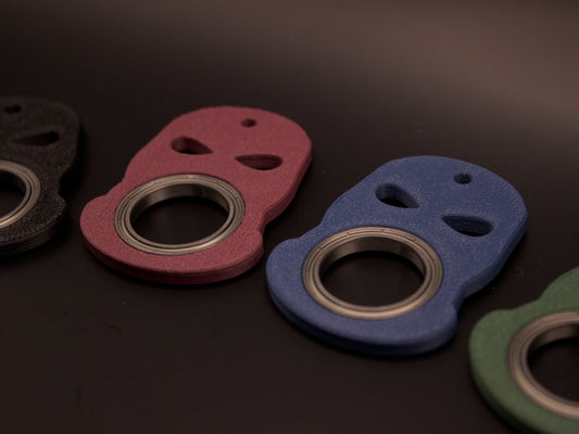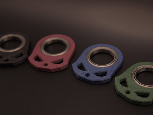 Titanium and Carbon Fiber keychains are CNC-cut and hand-finished. 3D printed ones use carbon fiber-reinforced PETG. Bearings are chrome steel for the 3D printed versions or stainless for Carbon Fiber and titanium keychains. All keychains are lightweight, durable, and designed for everyday carry.
